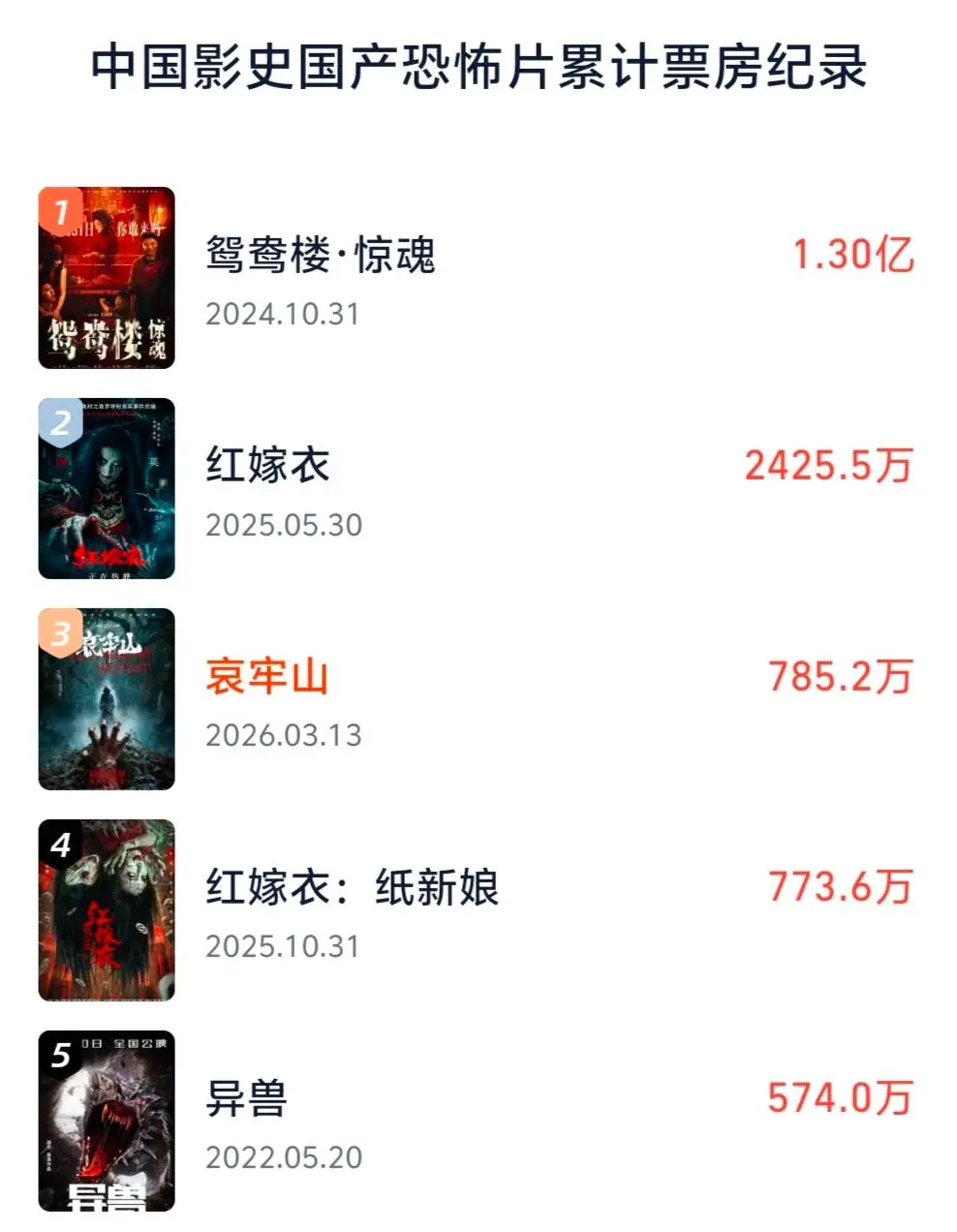 但是要想超过累计票房2425万,排名国产恐怖片影史第二的《红嫁衣》就难了。